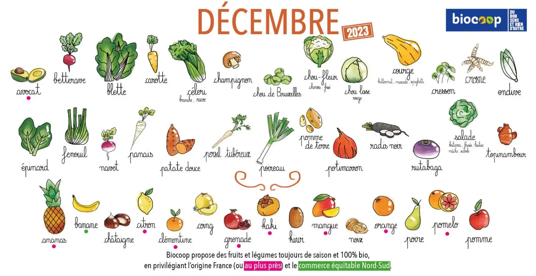 Découvrez le calendrier des fruits et légumes de saison du mois de Décembre