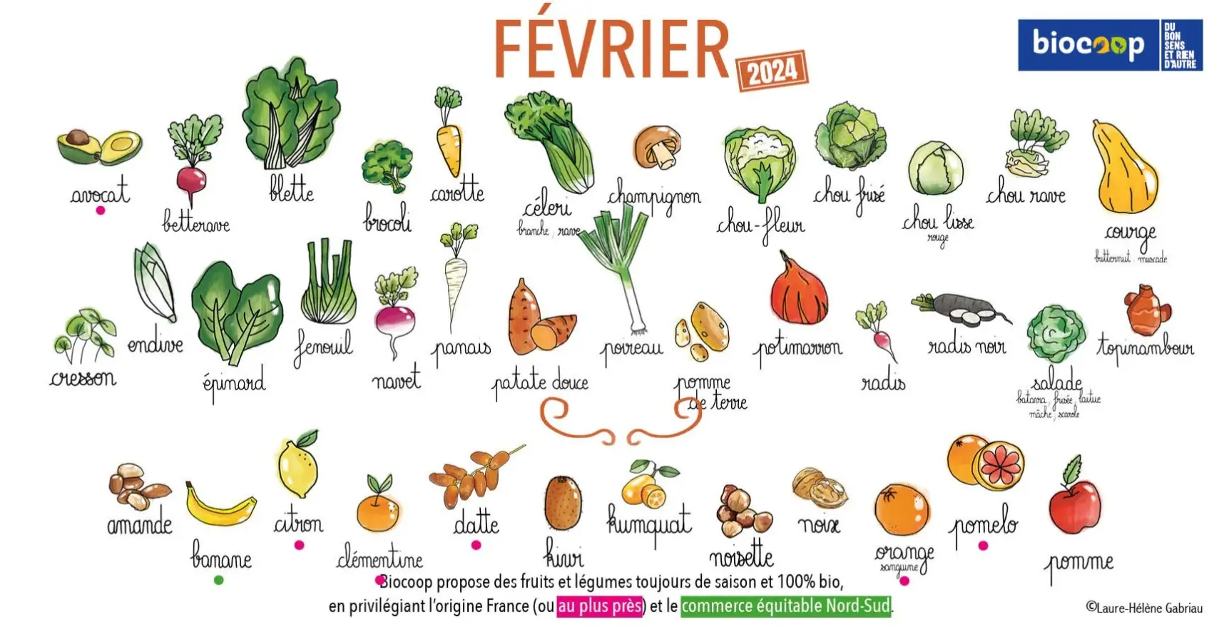 Parce que manger des produits de qualité rime avec respect de la saisonnalité, Biocoop a élaboré un calendrier de saisonnalité pour ses fruits et légumes bio.